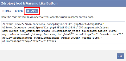 Iframe zdrojovy kod tlačítka To se mi líbí.png