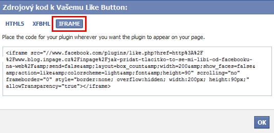 Iframe zdrojovy kod tlačítka To se mi líbí.png