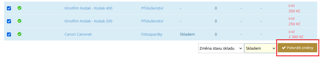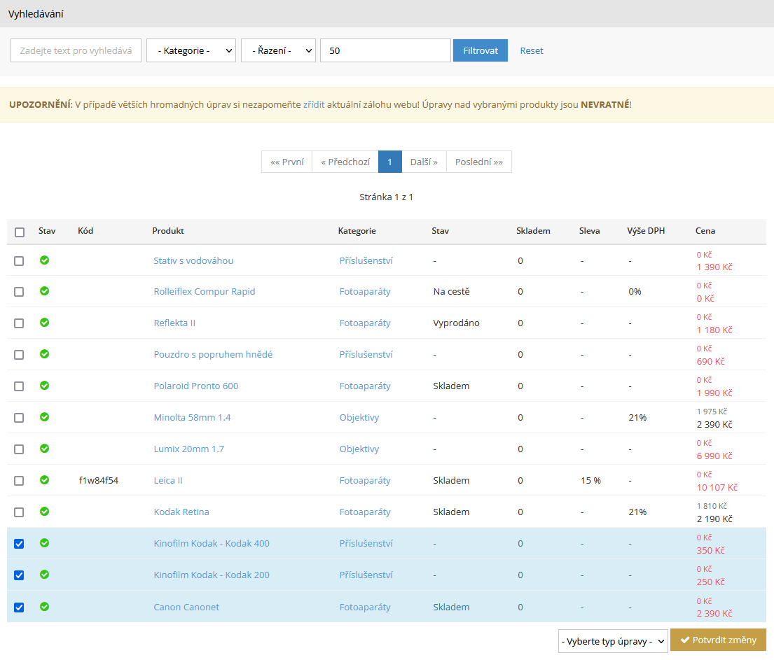 Hromadné úpravy produktů