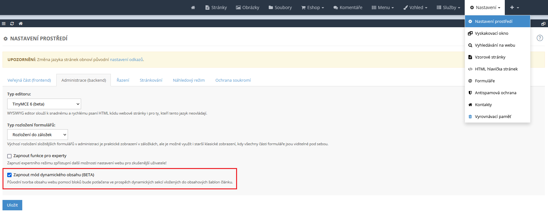 Mód dynamického obsahu