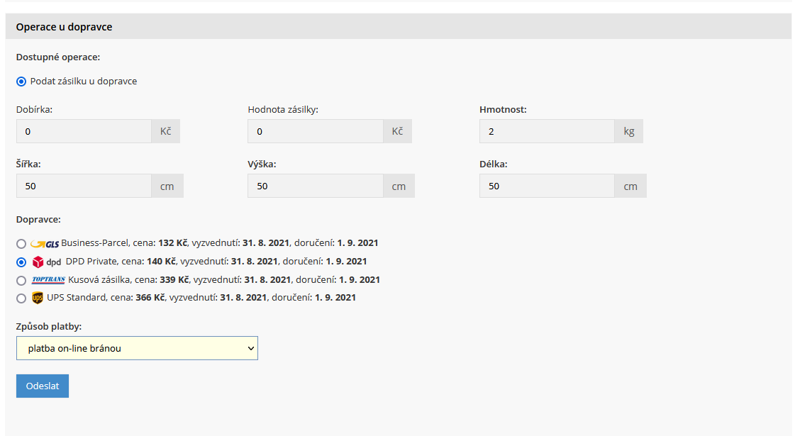 Zaslat - napojení e-shopu
