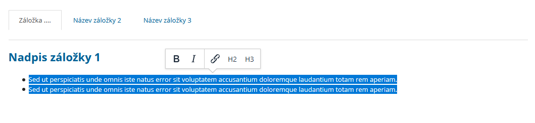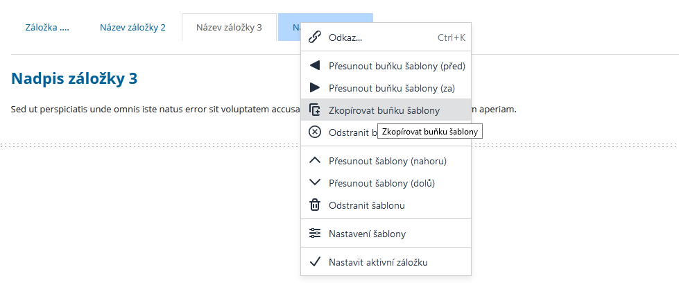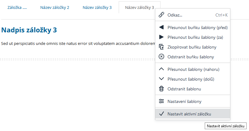 Obsahová šablona Záložky