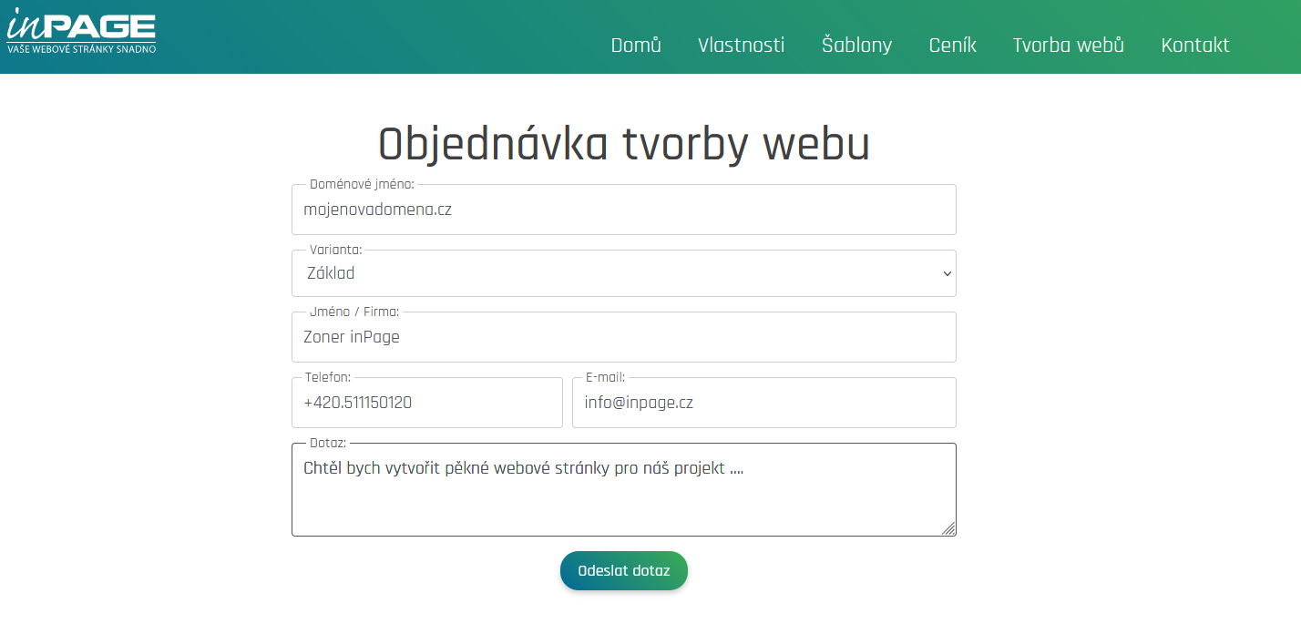 Přesuňte web pod inPage