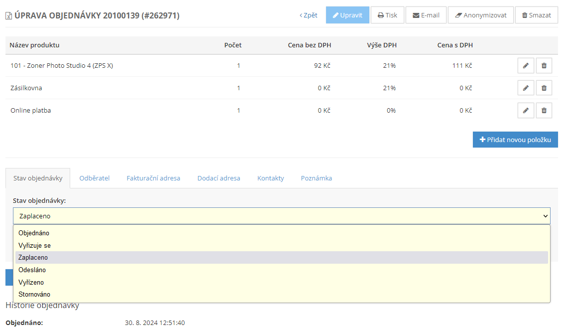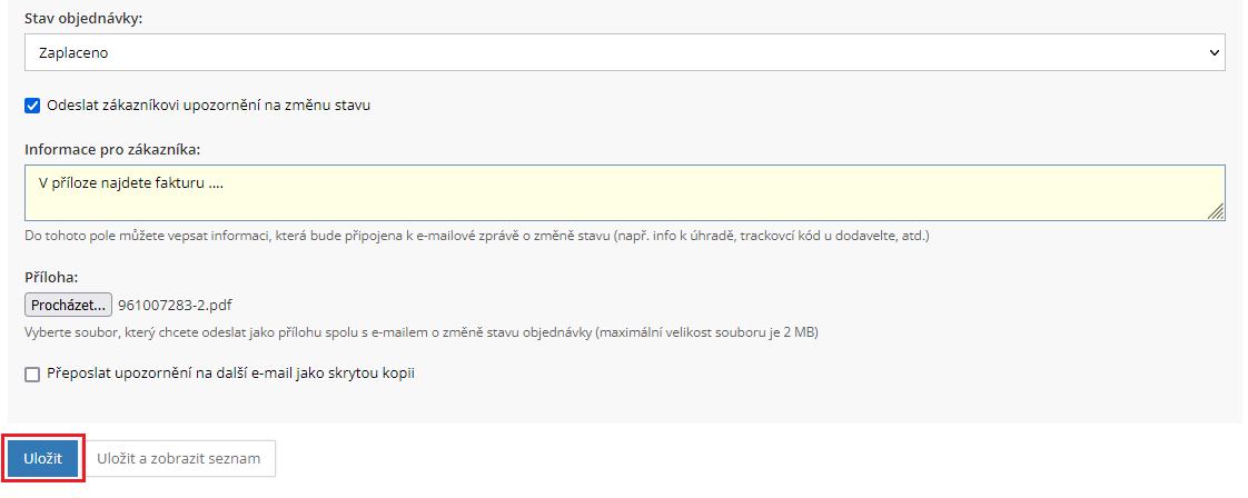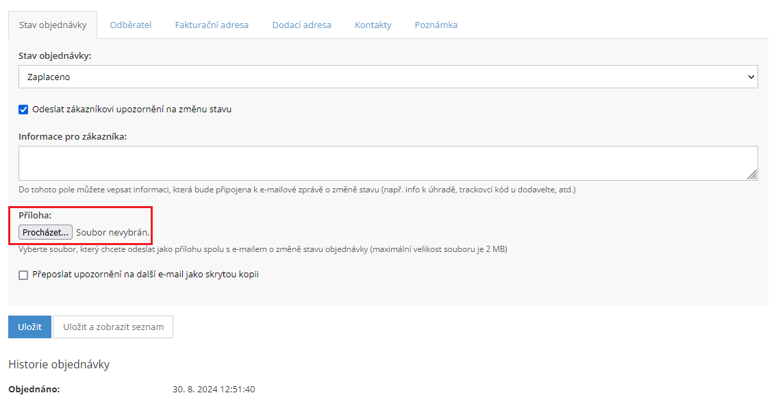Připojení souboru v úpravě objednávky