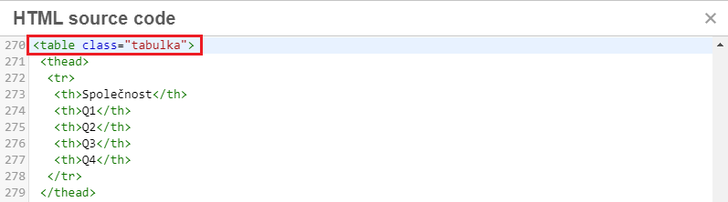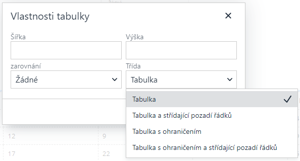 Změna nastavení tabulek