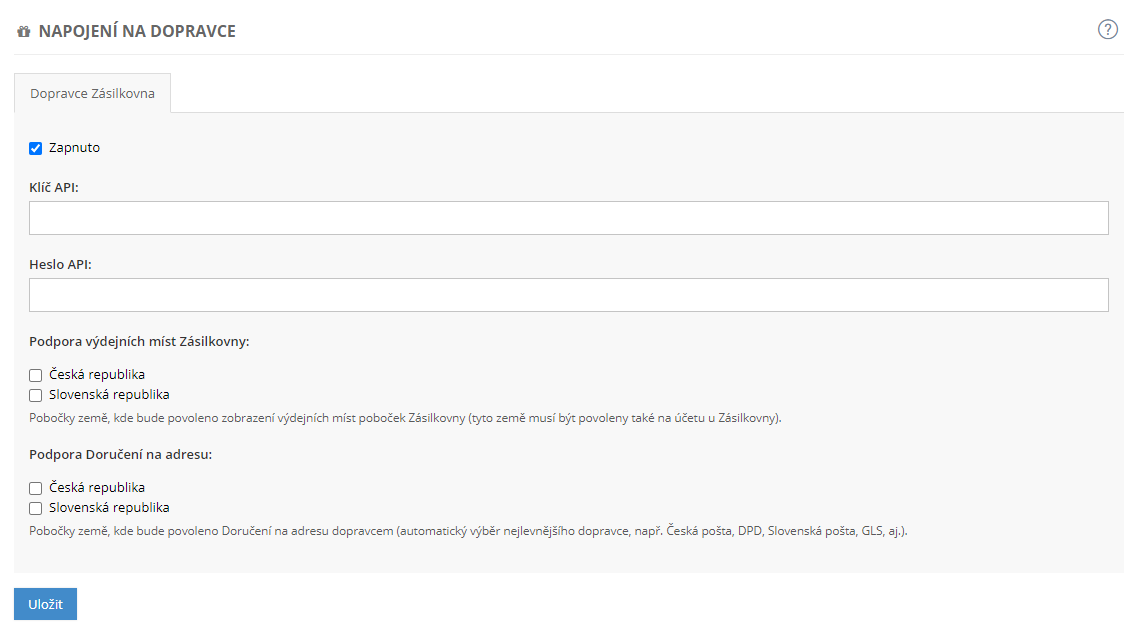 Možné je také napojit dopravce zásilkovnu.