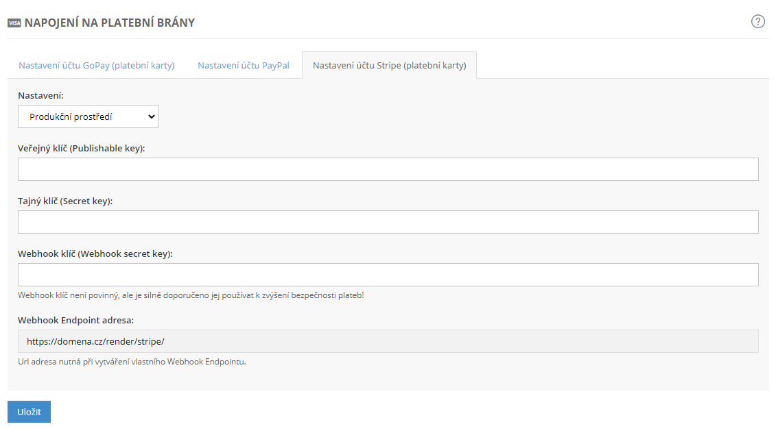 Nastavení e-shopu