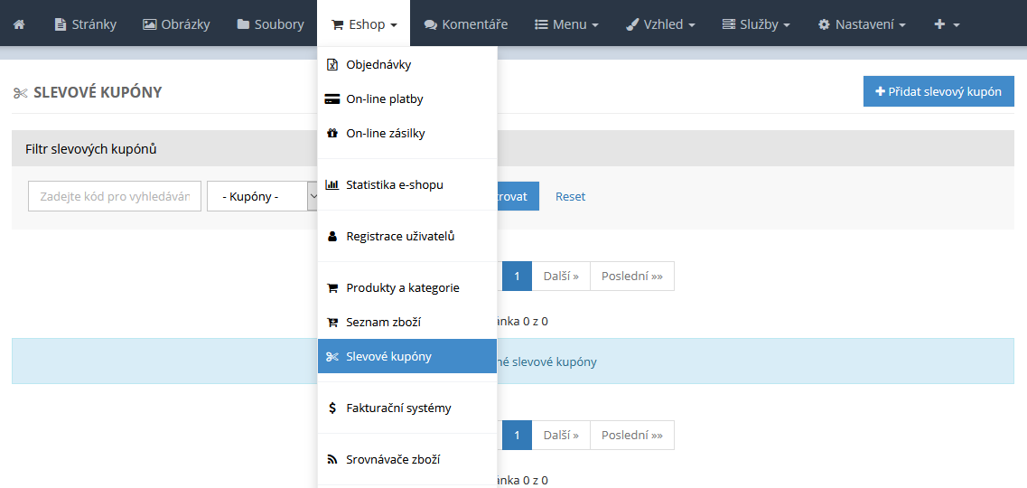 Slevové kupony jsou dnes již běžnou formou toho, jak dát zákazníkovi jednorázovou slevu na produkty ve vašem e-shopu. Jejich využití je velice rozšířené a ze strany obchodníků velice vyhledávané. Jak si kupony v e-shopu nastavit, a jak je spravovat, popisujeme v článku Slevové kupóny.