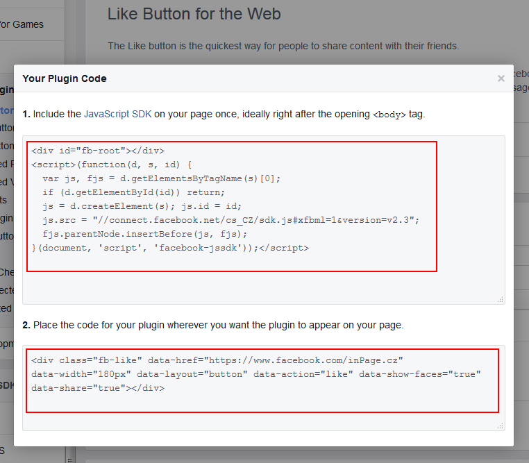 ten návod na tlačítko "like" nefunguje. na stráce se nezobrazí nic pod tím kodem. obrázky neodpovídají skutečnosti k uvedeným odkazům. "je na nich úplně jiného než na odkazu". Máte pravdu nejlepší a nejrychejší by bylo sem vložít funkční celý kód který jde zkopírovat, do kterého by si uživatel vložil jen svoje info. jak vídím "like" nefunuje mě, ani ostatním lidem co píší... podobné návody jsou i na jiných webch, ale také nefungují. Tak nevím co to je za moribundus... když vám pošlu na mejl svoje info potřebné pro vytvoření toho talčíka, vytvoříte mi nový kód?