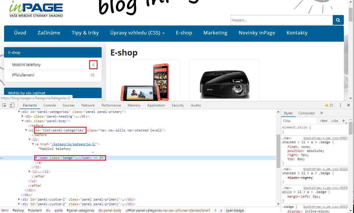 | počet položek v e-shop menu | #list-panel-categories .badge | |