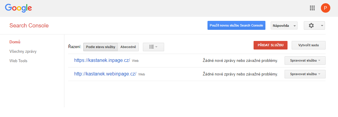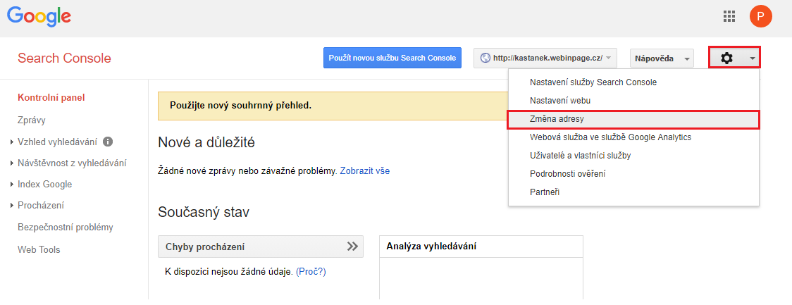 - Přidejte nový web do Google Search Console, ověřte vlastnictví webu, přidejte sitemap.xml a vše nastavte stejně jako u původního webu. Jak s tímto nástrojem pracovat je popsáno v článku Google Search Console.