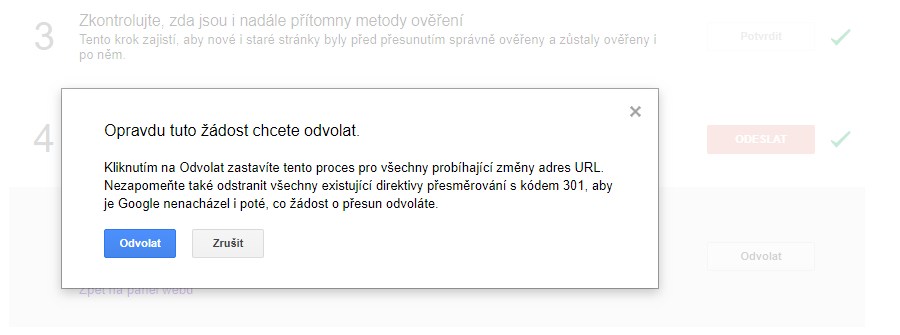 Změnu adresy v Google Search Console lze také odvolat. Na domovské stránce v seznamu webů vyberte svůj původní web, po kliknutí na ikonu ozubeného kolečka vyberte Změna adresy a v dolní části klikněte na možnost odvolat.