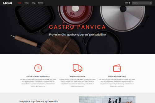 Další z našich šablon určených především pro váš e-shop, ale nejen pro něj. Tematicky je šablona mířena na gastronomii, a prodej gastro zařízení a příslušenství. Nicméně tuto šablonu může využít kdokoli, kdo chce precizně zpracovanou grafiku a přehledný design webu.