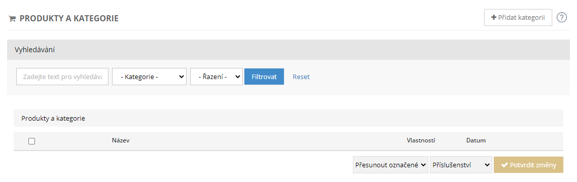 Správa kategorií