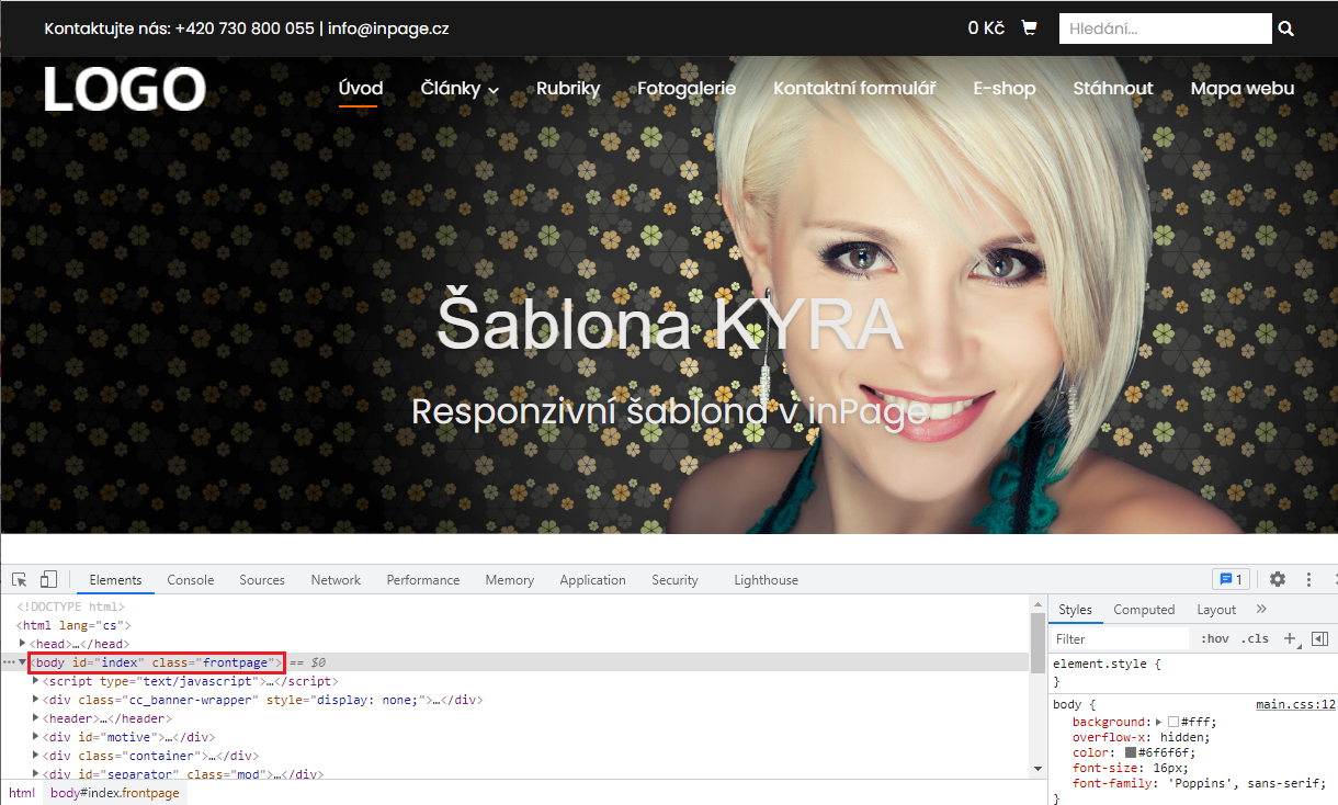 Podle vašeho záměru si zkopírujte buď identifikátor nebo třídu stránky, tedy definici umístěnou mezi úvozovkami. S tímto budeme pracovat dále ve vlastních CSS stylech.