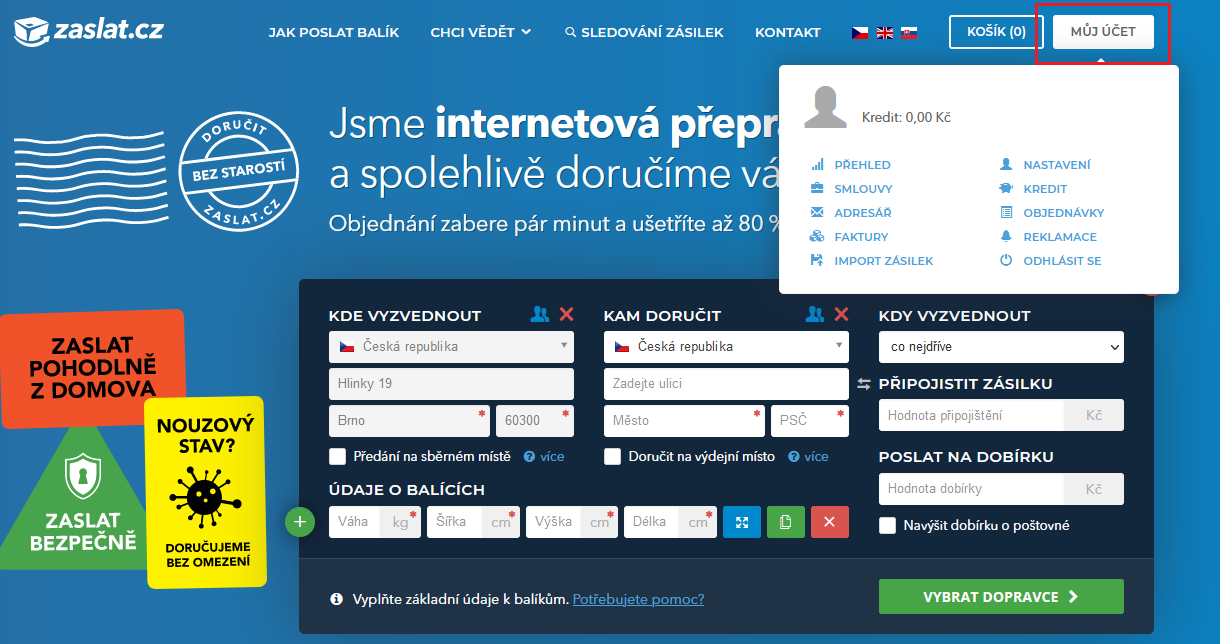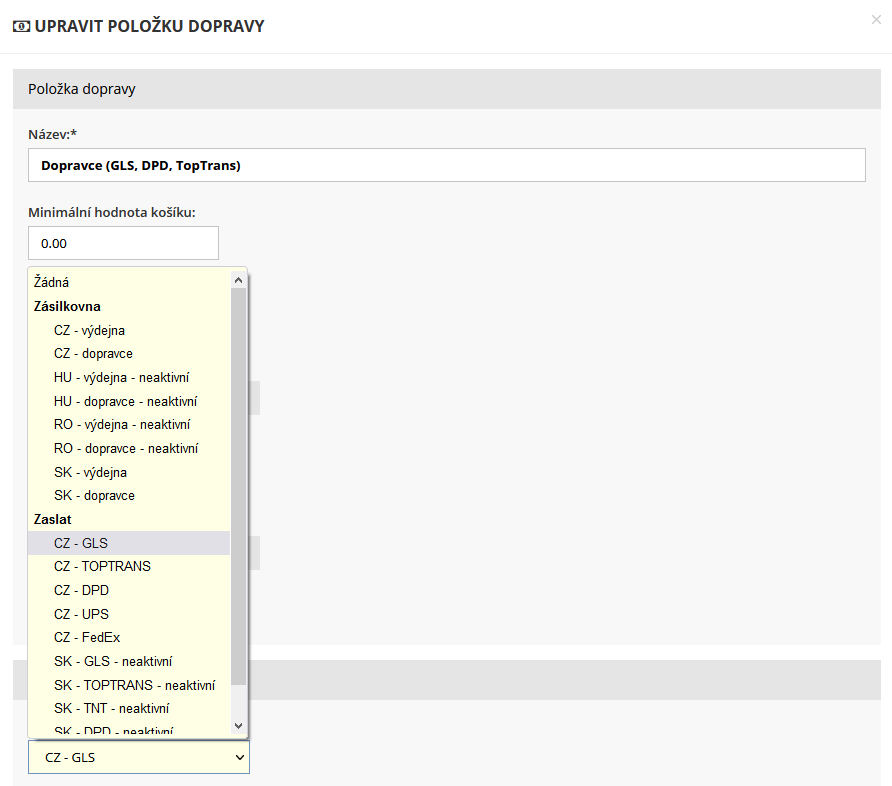 Napojení na dopravce Zaslat