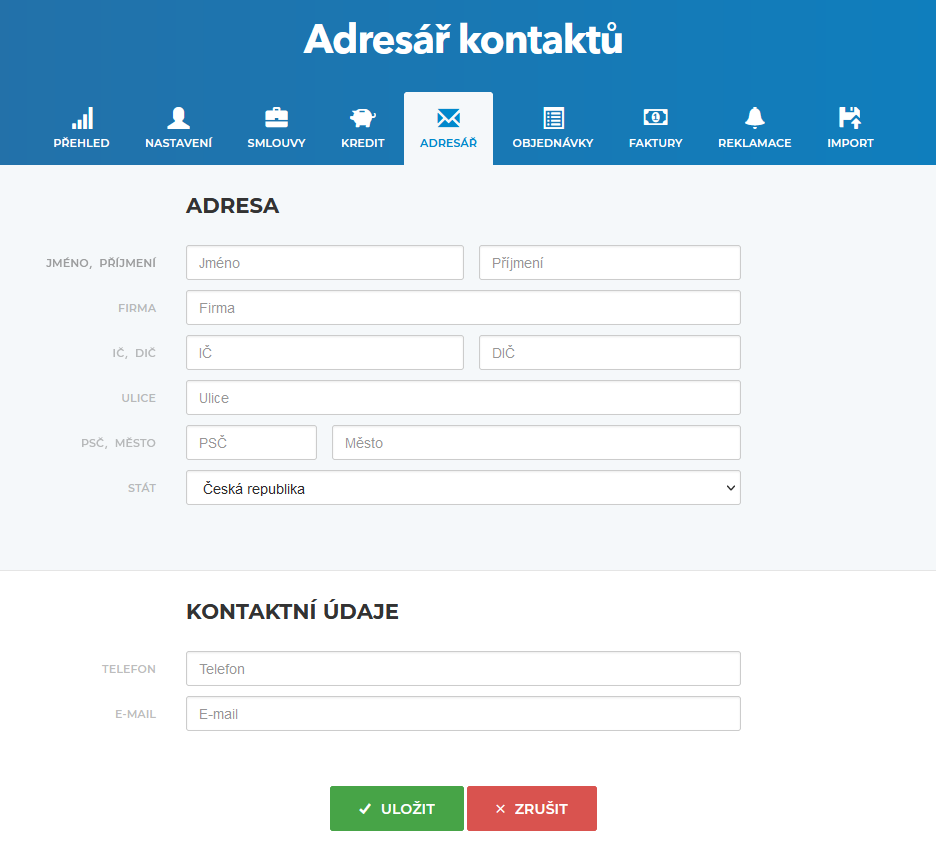 Ve formuláři doplníte kontaktní údaje a kontakt uložíte.