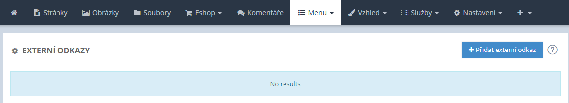 - externí odkazy: oblíbené odkazy na jiné stránky. Vytvářejí se v sekci Menu → Externí odkazy (viz níže Přidání externích odkazů)