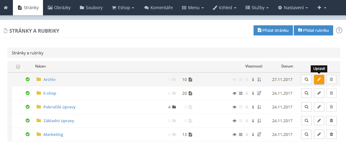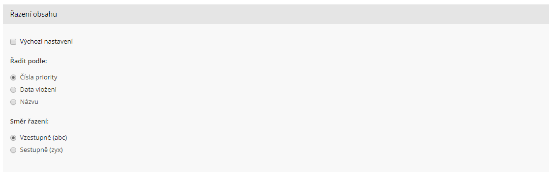Obsah webové prezentace můžete v administraci řadit podle priority, názvu nebo data vložení, vzestupně či sestupně. Volba nastavení řazení se projeví v administraci i na webových stránkách.