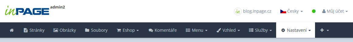 Nastavení základních složek a dalších prvků webu najdete v sekci Nastavení v hlavní navigační liště.