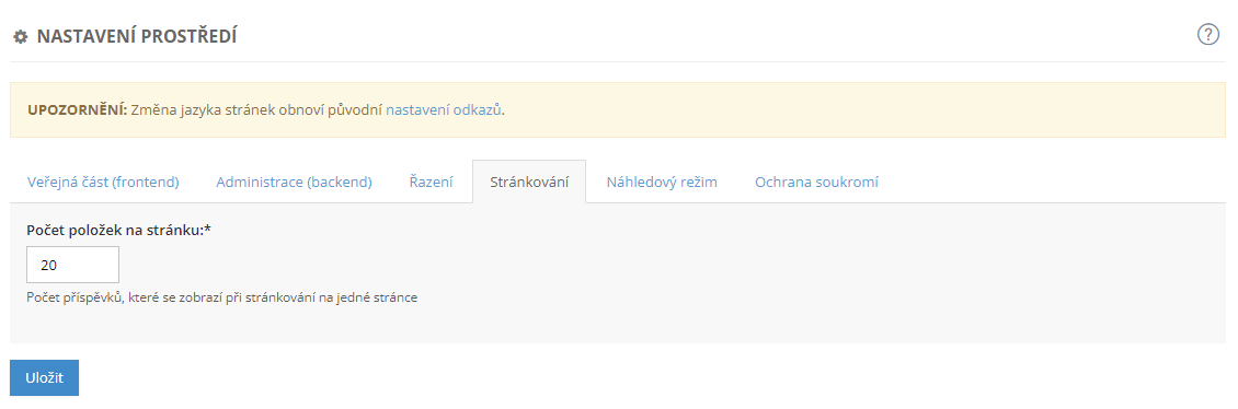 Zde vyberete počet příspěvků, který se má zobrazit na jedné stránce. Ovlivňuje také počet fotek a produktů na jedné stránce.