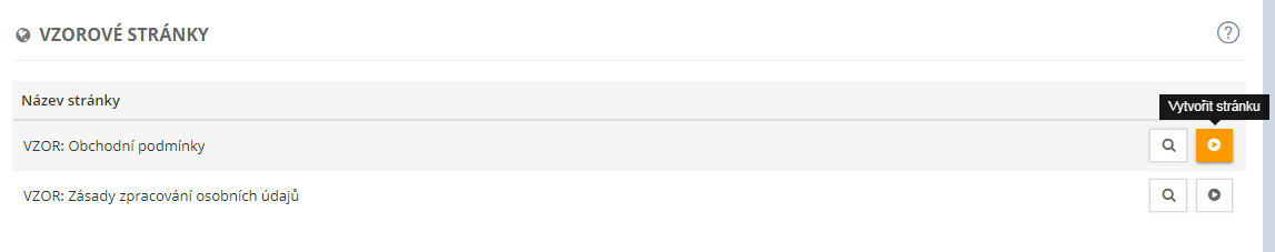 V této části jsou předpřipravené vzorové stránky, které můžete na webu použít. Stačí upravit text a stránku uložit. Příklad použití je v článku Vzorové obchodní podmínky v administraci inPage.