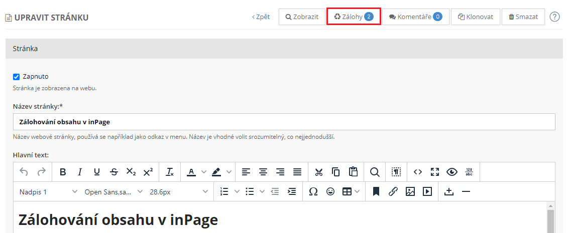 Není tedy třeba zoufat, že jste si stránku upravili a teď nevíte, jak vše vrátit zpět. Stačí využít zálohu článku a obnovit jej.