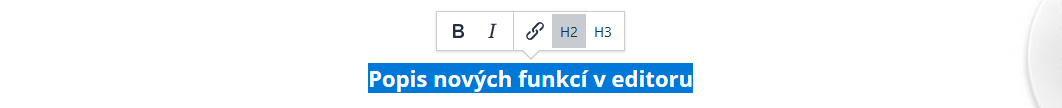 Přehled všech základních funkcí, které zůstaly totožné s předchozí verzí editoru, naleznete v článku Práce s WYSIWYG editorem.