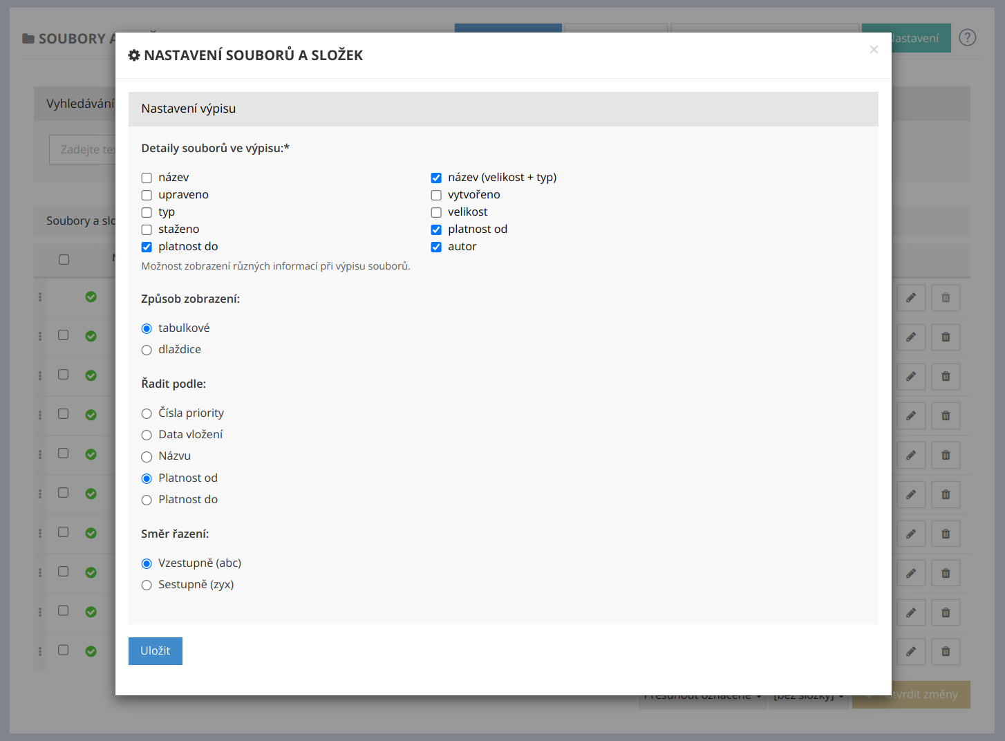 Nově si u každé složky můžete sami vybrat, které vlastnosti souborů  ve složce chcete návštěvníkům Vašeho webu zobrazit. Máte k dispozici tyto vlastnosti: