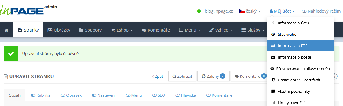 Doufáme, že tato novinka vám opět výrazně usnadní tvorbu a správu webových stránek na inPage a díky tomu ještě více využijete potenciálu a možností našich služeb.