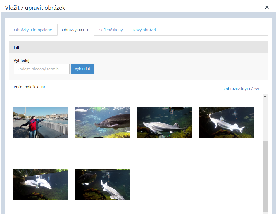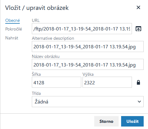 Při vložení obrázku/souboru z FTP se vám v průzkumníku zobrazí adresa, kde je na FTP obrázek či soubor uložen. Dialog následně uložíte a obrázek či soubor se vám bude zobrazovat na webu.