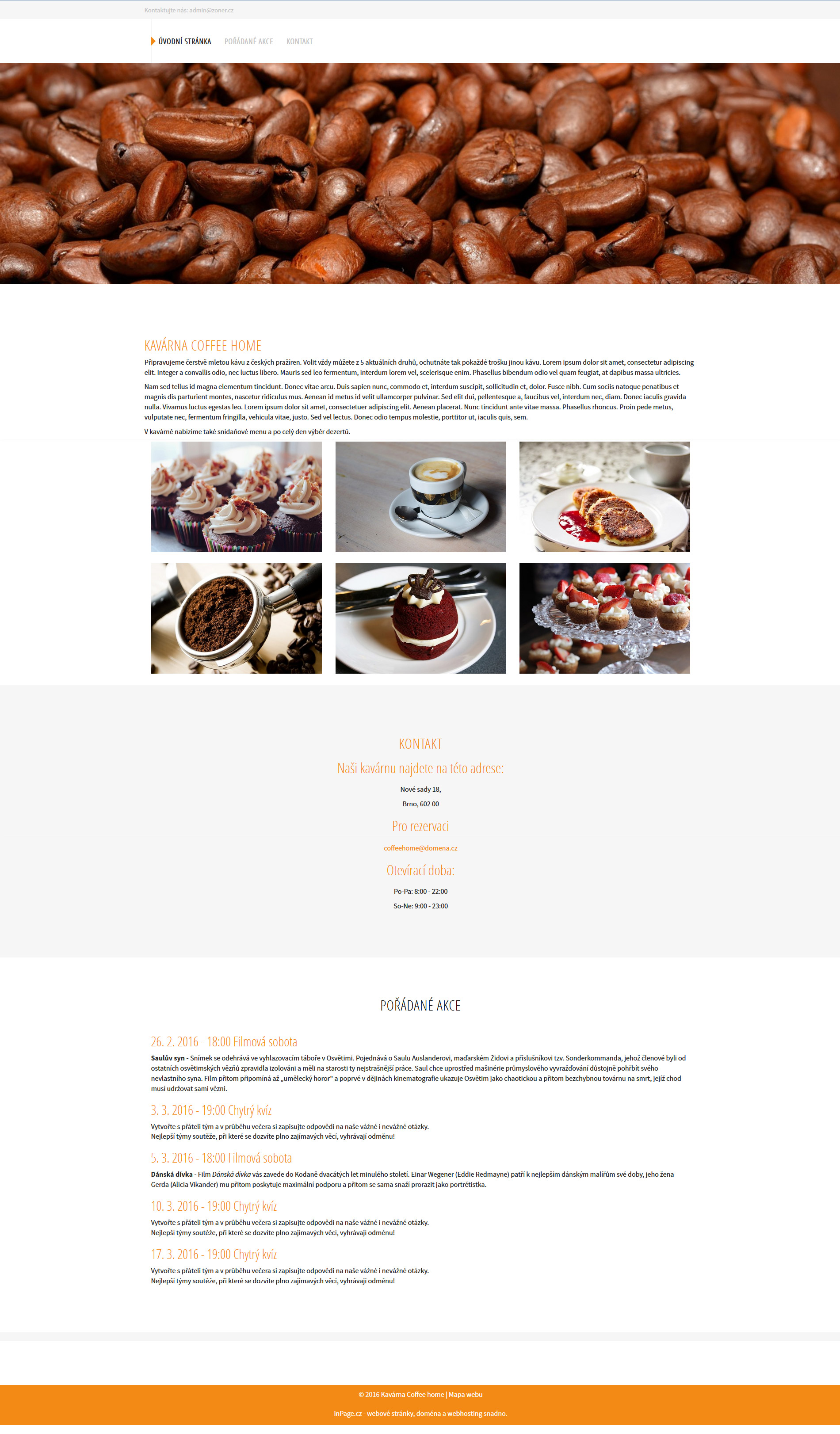Pro vytvoření praktického příkladu jsem si zvolila web kavárny, který bude mít prvky: