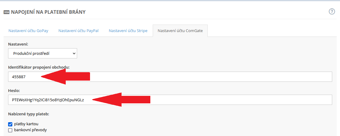 Nastavení platební brány Comgate