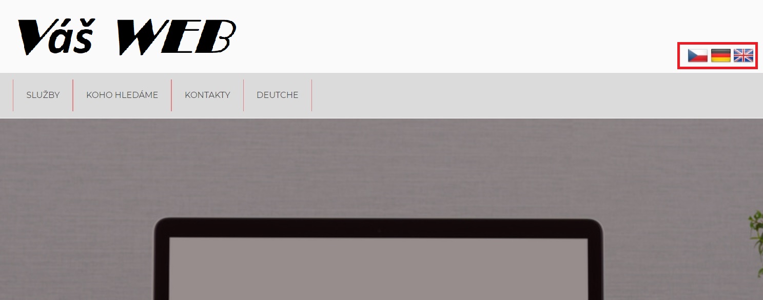 4. Výsledkem předchozího kroku je zobrazení vlaječky v menu. Vlaječka je aktivní a odkazuje na zadanou URL jazykové mutace.
