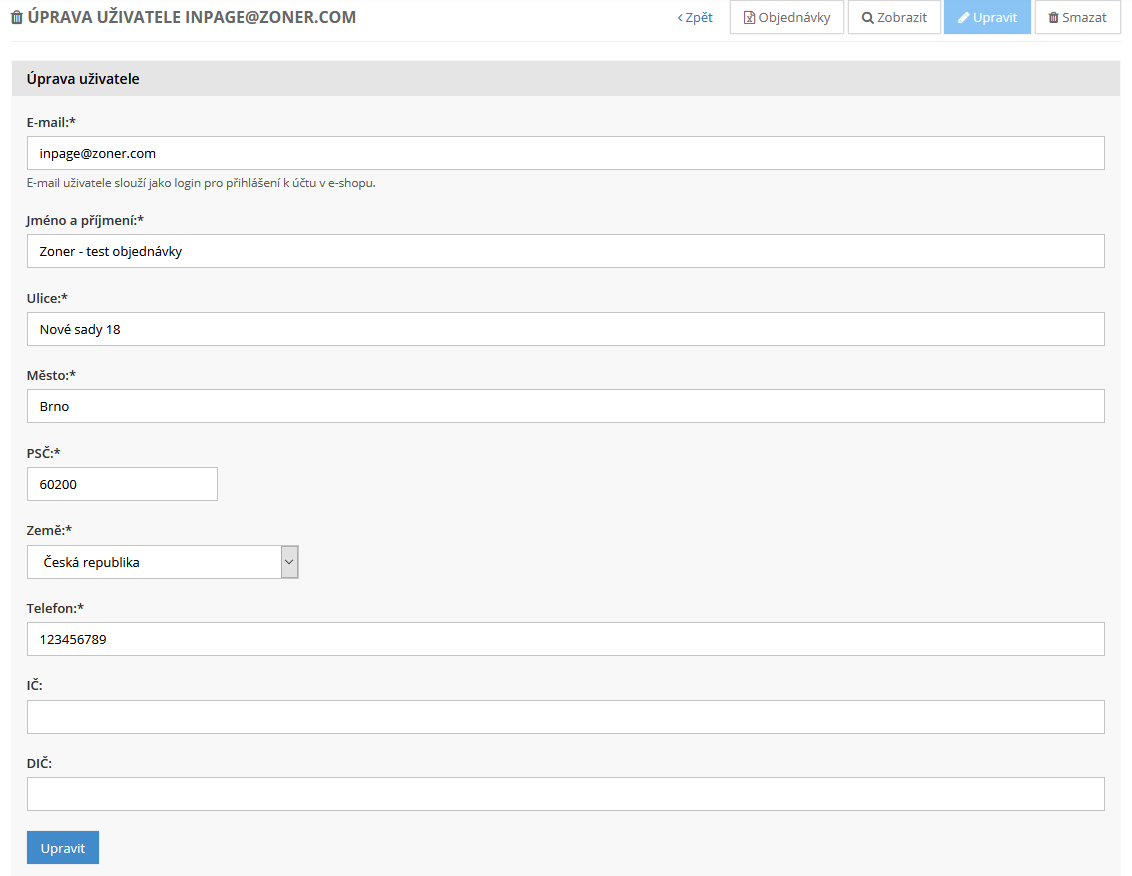 Je zde podrobný přehled všech jeho dosavadních objednávek, dále pak možnost editace jeho kontaktních a fakturačních údajů, dále pak možnost nastavit pro daného zákazníka slevu na vaše produkty a možnost zakázat, či opětovně povolit daný zákaznický účet.