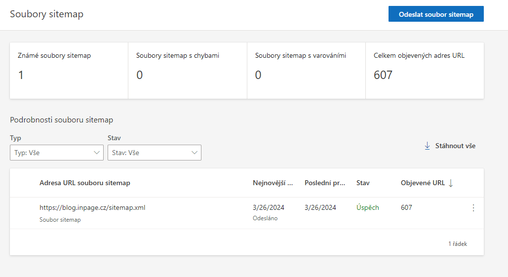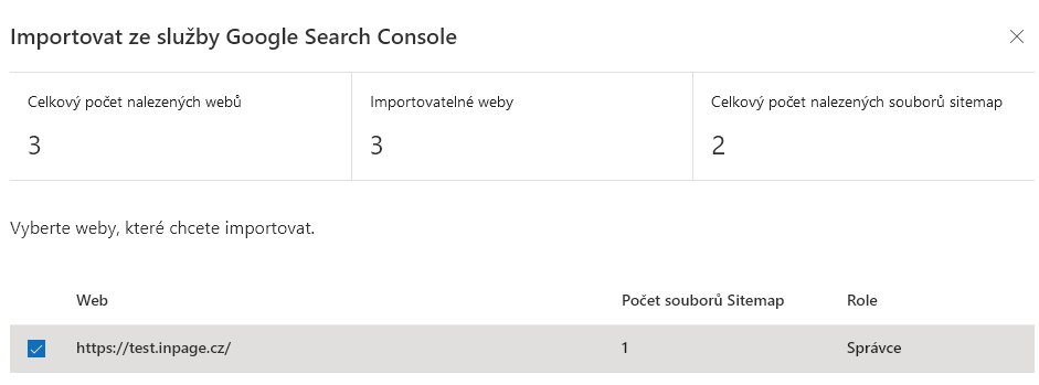 Jak propojíte svůj web na inPage se službou Google Search Console je podrobně popsáno v našem článku Google Search Console (Google Webmaster Tool).