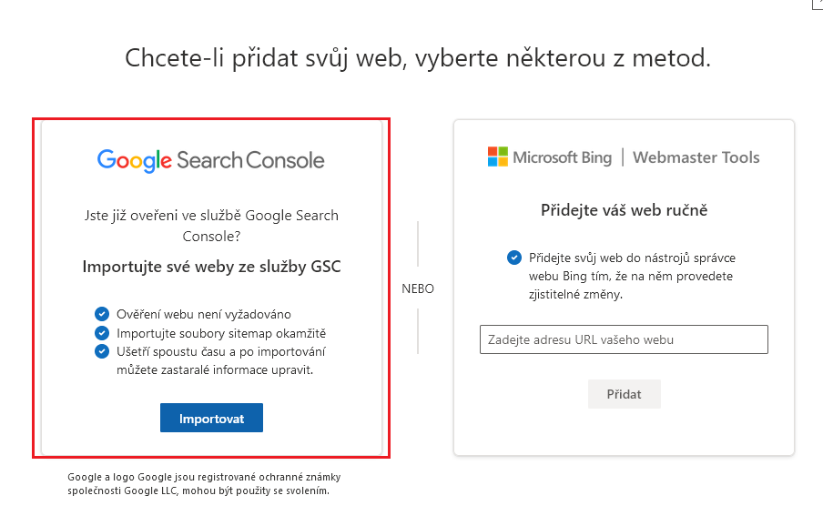Registrace do vyhledávačů (Google, Seznam, Bing)