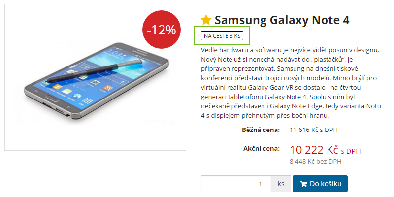 Na stránce produktu se nám informace o počtu produktů zobrazí v samotném stavu produktu: