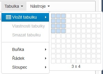 Tabulku vytvoříme jednoduše klepnutím na ikonu Tabulka → Tabulka a výběrem počtu polí. Do polí vložíme data a můžeme začít s úpravami.