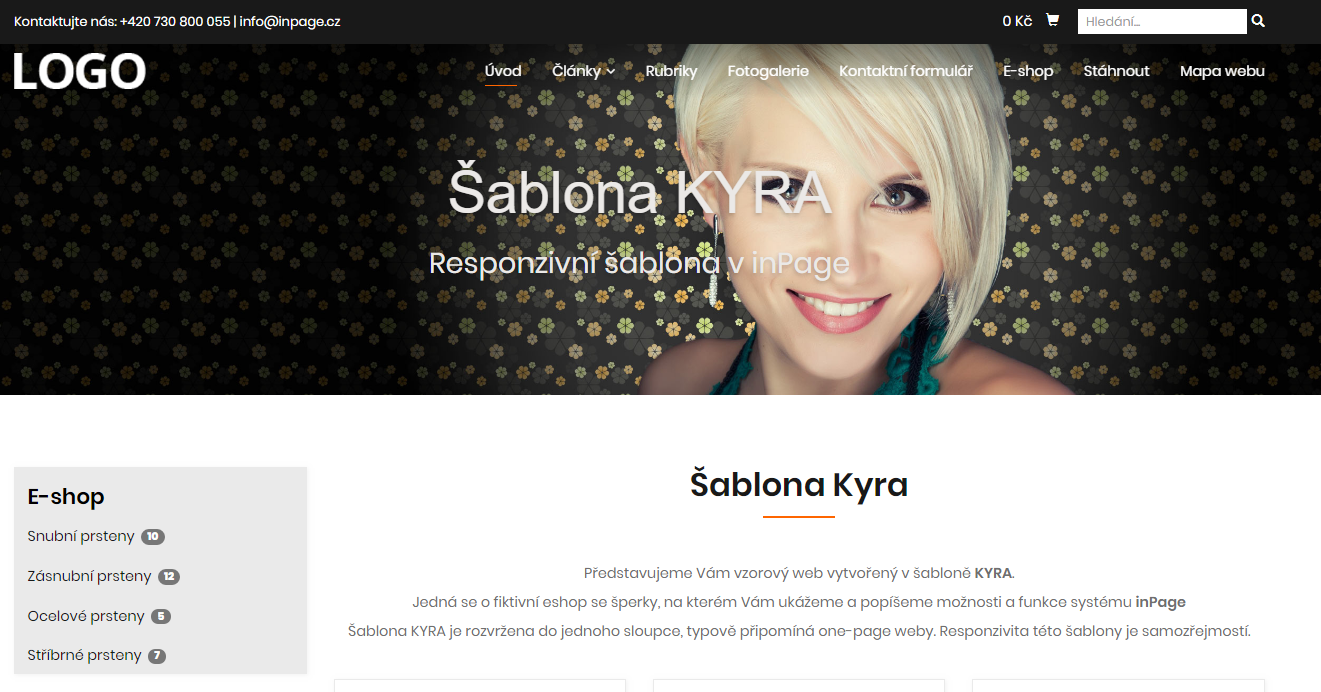 Využijte výhody šablony Kyra naplno! Vytvořte si své webové stránky snadno a rychle v inPage.