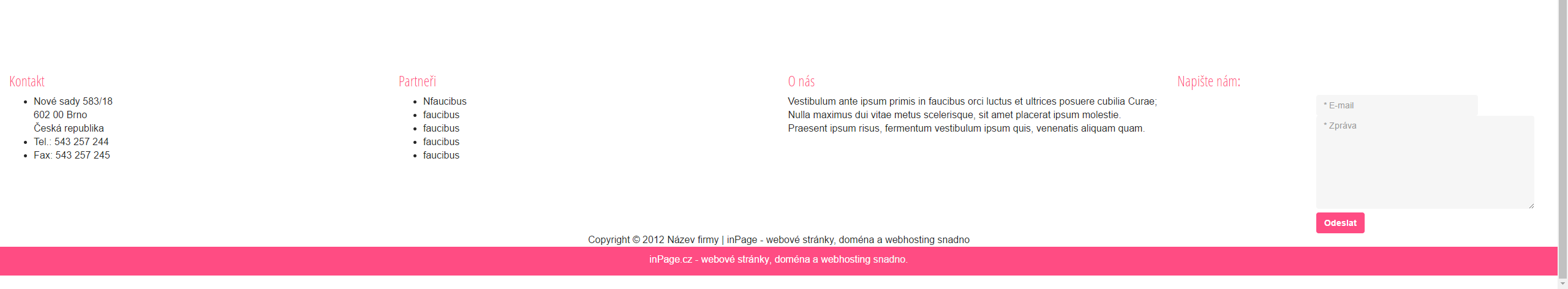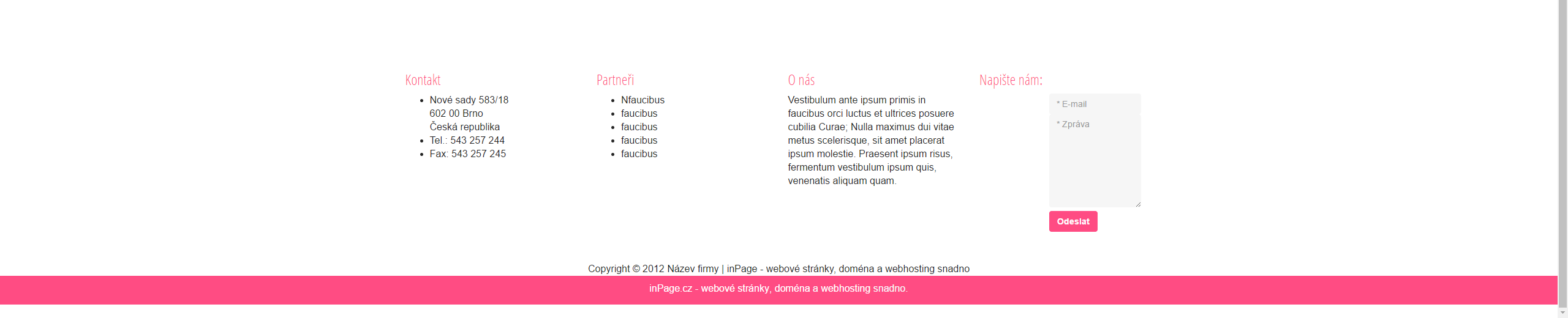 Do patičky tak můžete vložit jednoduchý text nebo můžete využít obsahové šablony kontakt, mapa, tři sloupce apod.