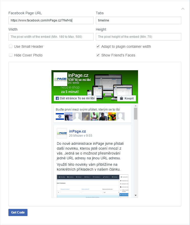 Sociální síť Facebook se nám snaží všemožně vycházet vstříc, a proto vyvinula bezplatný Page Plugin, který si můžete umístit na webové stránky. Díky němu mohou návštěvníci dát "to se mi líbí" vaší facebookové stránce, aniž by opustili web. Pojďme se podívat, jak tento plugin vložíte do webových stránek na inPage.