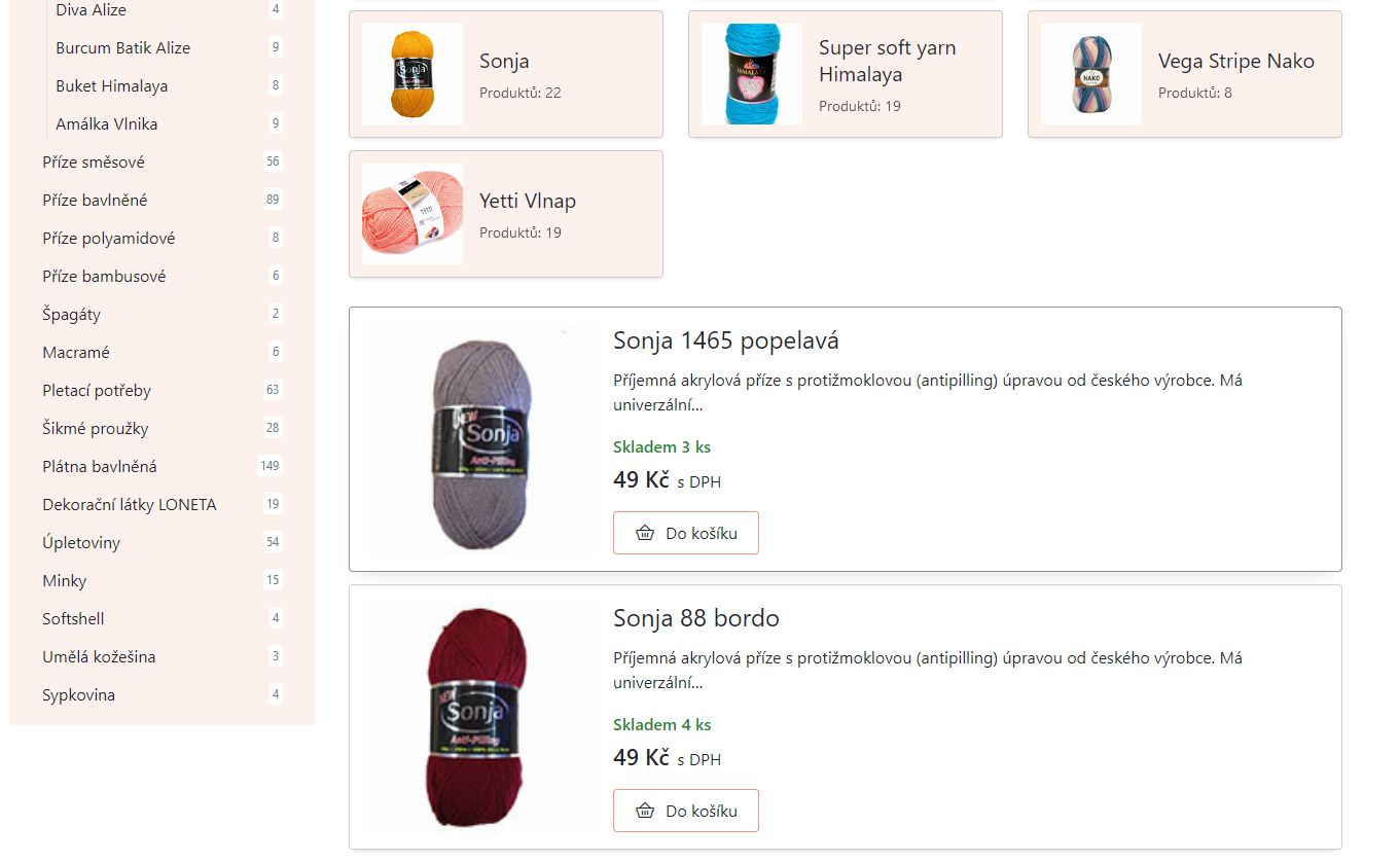 * Pro ilustraci jak vyhledávání a našeptávač funguje, jsme vybrali e-shop galanterie-veronika.cz Jedná se o jeden z rozsáhlejších e-shopů vytvořených na inPage obsahující stovky produktů a můžete zde nejlépe vidět nové možnosti vyhledávání a našeptávače v kategoriích e-shopu. Je taktéž krásnou ukázkou toho, že na inPage si můžete vytvořit velice pěkný a funkční e-shop, ve kterém je radost nakupovat.