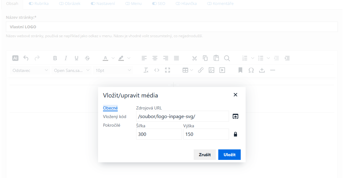 Jak přidat do webu na inPage textové logo nebo logo ve formátu SVG