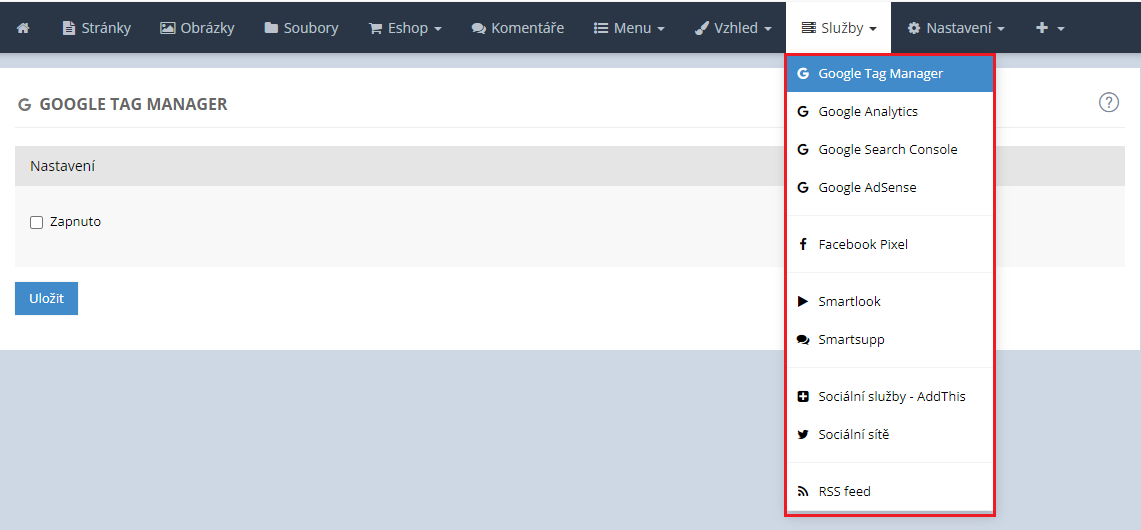 Základní informace o službách které lze s inPage propojit naleznete v našem článku Napojení na externí služby