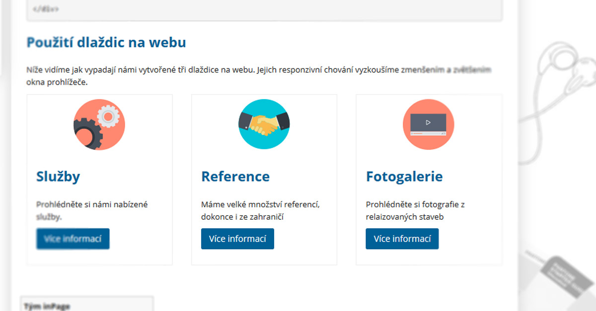 Ukázka použití dlaždic na hlavní straně webu.